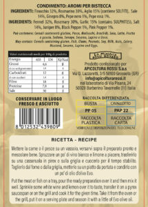 Ingredienti: sale, aglio, rosmarino, finocchio, ginepro, pepe nero, pepe rosa (schinus molle).