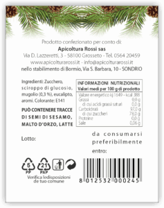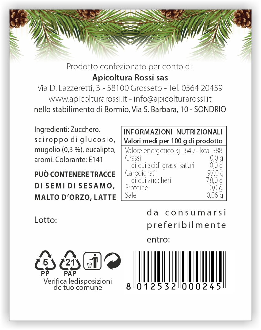 Ingredienti: zucchero, sciroppo di glucosio, mugolio, eucalipto.