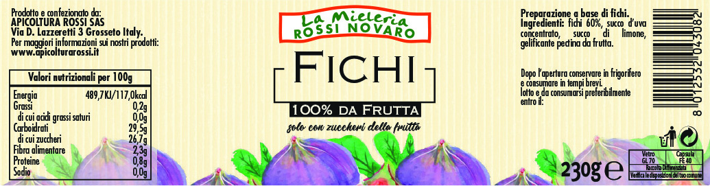 Ingredienti: fichi 60%, succo d’uva concentrato, succo di limone, gelificante pectina.