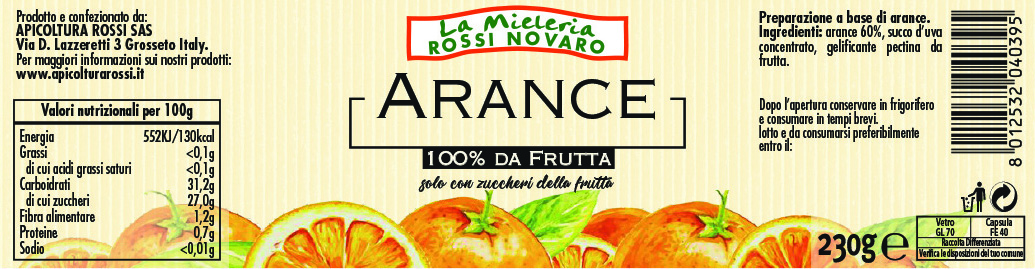 Ingredienti: arance 60%, succo d’uva concentrato, gelificante pectina.