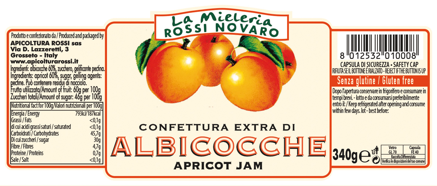 Ingredienti: albicocche 60%, zucchero, gelificante pectina.