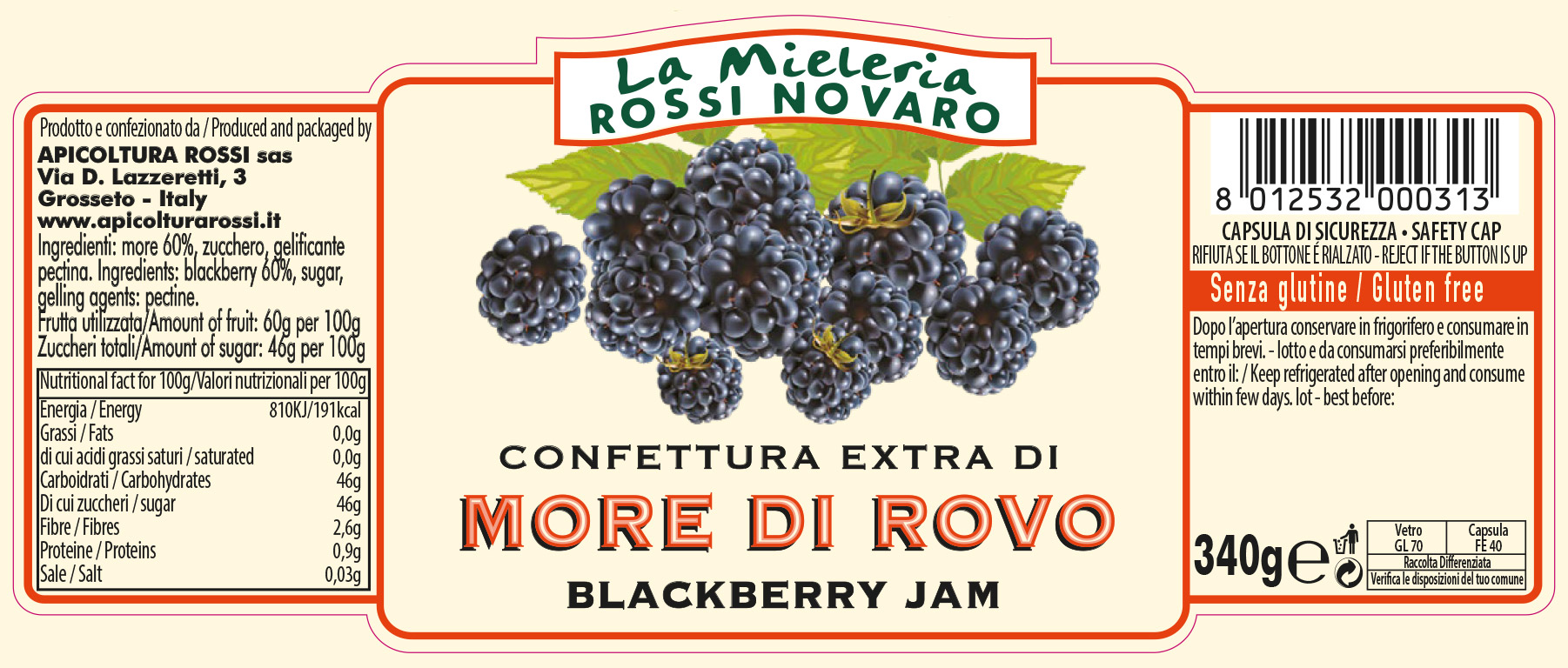 Ingredienti: more 60%, zucchero, gelificante pectina.