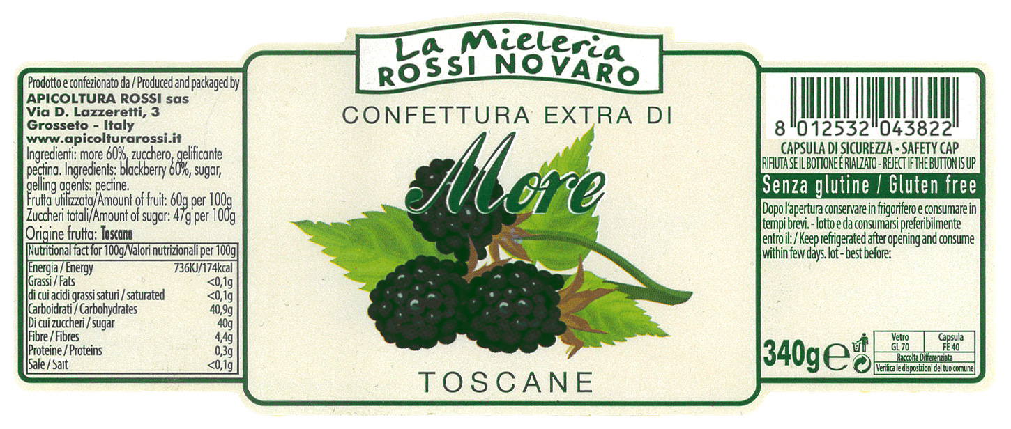 Ingredienti: more 60%, zucchero, gelificante pectina.