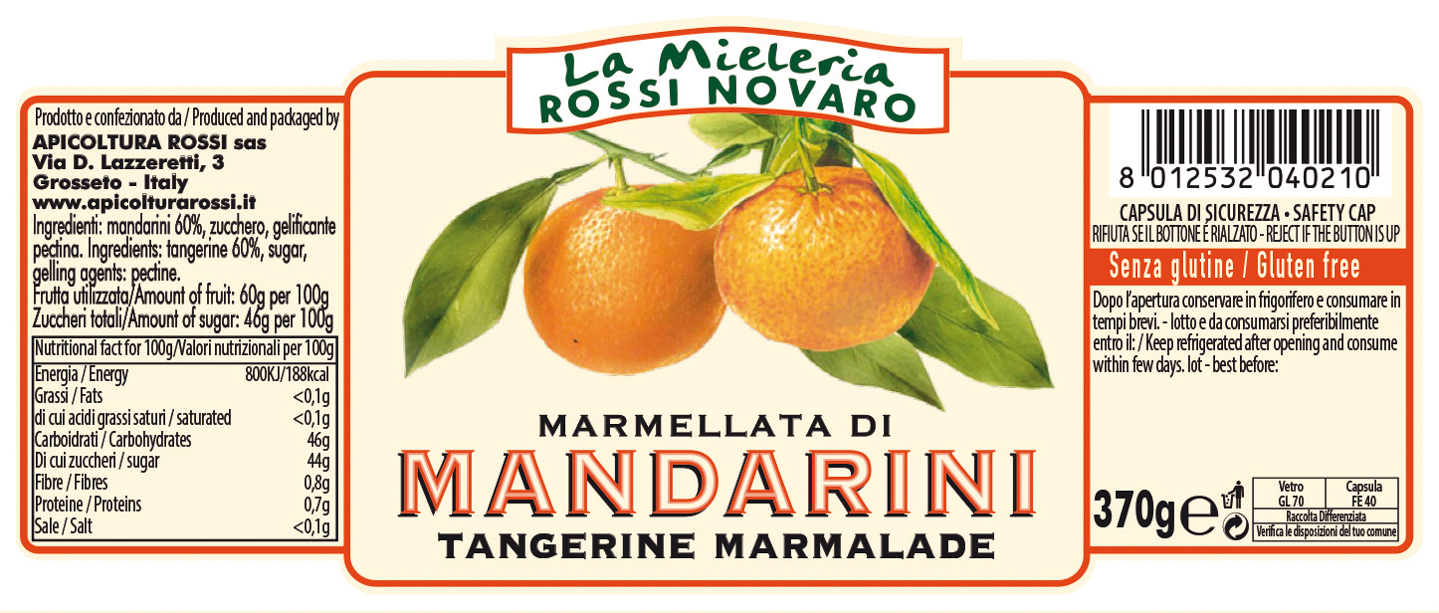 Ingredienti: mandarini 60%, zucchero, gelificante pectina.